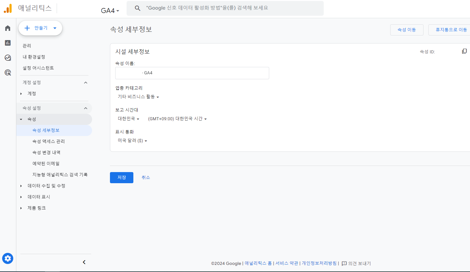 추가적으로 애널리틱스 속성 ID가 필요한데, 애널리틱스 사이트에서 관리페이지로 이동, 속성 세부정보에서 확인이 가능합니다.